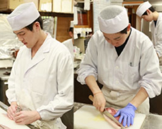 寿司職人である祖父を目標に、実践的で仕事量の多い独楽寿司を選びました。現在は軍艦巻きを担当、注文が入ったら素早く提供できる様に心がけています。寮での一人暮らしは大変ですが、毎日の仕事は声を出して頑張っています。